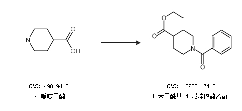 2.通過4-哌啶甲酸合成1-苯甲酰基-4-哌啶羧酸乙酯
