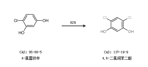 1.通過4-氯雷瑣辛合成4,6-二氯間苯二酚,收率約82%;