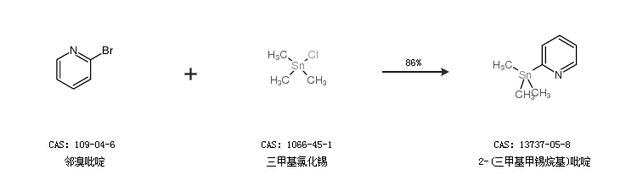 2.通過(guò)三甲基氯化錫和鈉合成2-(三甲基甲錫烷基)吡啶,收率約51%;