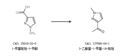 1.通過1-甲基吡唑-3-甲酸合成3-乙酰基-1-甲基-1H-吡唑