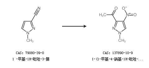 2.通過1 -甲基-1H-吡唑-3-腈合成1-(1-甲基-4-硝基-1H-吡唑-3-基)乙酮