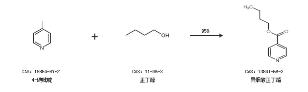 1.通過4-碘吡啶和正丁醇合成異煙酸正丁酯,收率約95%;