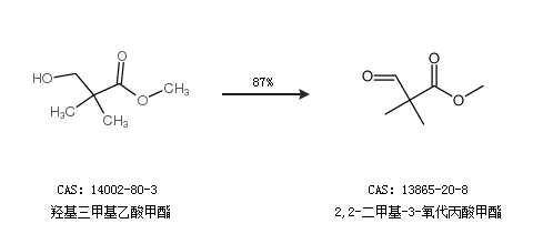 1.通過(guò)羥基三甲基乙酸甲酯合成2,2-二甲基-3-氧代丙酸甲酯,收率約87%;