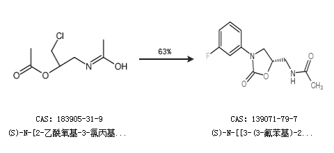 2.通過(S)-N-[2-乙酰氧基-3-氯丙基]乙酰胺Acetamide合成(S)-N-[[3-(3-氟苯基)-2-氧代-5-惡唑烷基]甲基]乙酰胺,收率約63%;