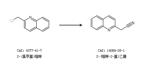 1.通過2-(氯甲基)喹啉合成2-(喹啉-2-基)乙腈