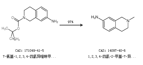 2.通過7-氨基-1,2,3,4-四氫異喹啉甲酸叔丁酯合成1,2,3,4-四氫-2-甲基-7-異喹啉胺,收率約97%;