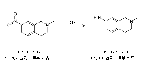 1.通過1,2,3,4-四氫-2-甲基-7-硝基異喹啉合成1,2,3,4-四氫-2-甲基-7-異喹啉胺,收率約98%;