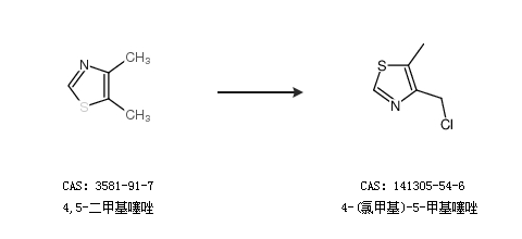 1.通過4,5-二甲基噻唑合成4-(氯甲基)-5-甲基噻唑