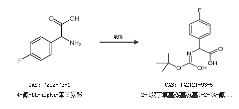 1.通過4-氟-DL-alpha-苯甘氨酸合成2-(叔丁氧基羰基氨基)-2-(4-氟苯基)乙酸,收率約46%;