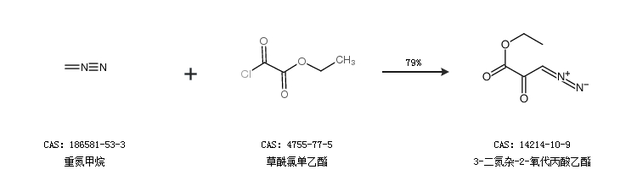 1.通過重氮甲烷和草酰氯單乙酯合成3-二氮雜-2-氧代丙酸乙酯,收率約79%;