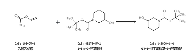 1.通過乙酸乙烯酯和1-Boc-3-羥基哌啶合成(S)-1-叔丁氧羰基-3-羥基哌啶