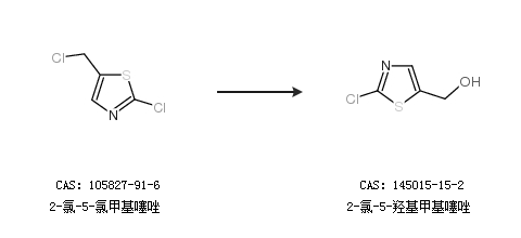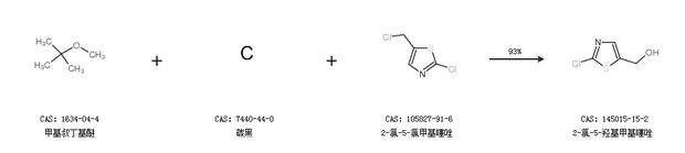 1.通過甲基叔丁基醚、碳黑和2-氯-5-氯甲基噻唑合成2-氯-5-羥基甲基噻唑,收率約93%;