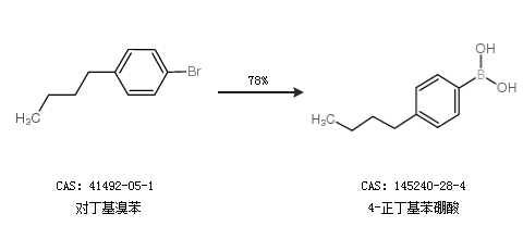 2.通過對丁基溴苯合成4-正丁基苯硼酸,收率約78%;