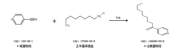 2.通過4-氰基吡啶和正辛基鎂溴鹽合成4-壬?;拎?,收率約73%;