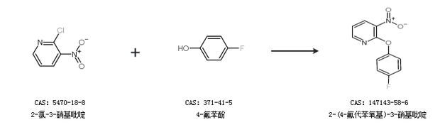 1.通過2-氯-3-硝基吡啶和4-氟苯酚合成2-(4-氟代苯氧基)-3-硝基吡啶