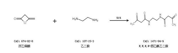 1.通過雙乙烯酮和乙二胺合成N,N,N,N-四乙酰乙二胺,收率約91%;