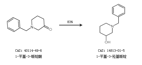 1.通過(guò)1-芐基-3-哌啶酮合成1-芐基-3-羥基哌啶,收率約83%;