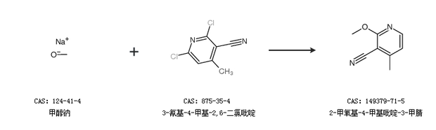 1.通過(guò)甲醇鈉和3-氰基-4-甲基-2,6-二氯吡啶合成2-甲氧基-4-甲基吡啶-3-甲腈