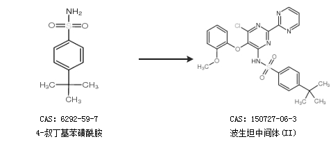 1.通過4-叔丁基苯磺酰胺合成波生坦中間體(II)