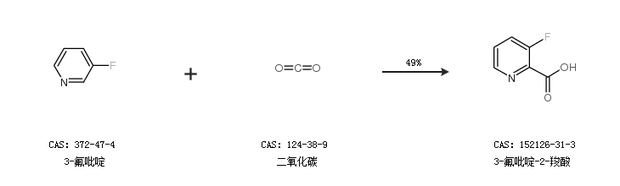 1.通過3-氟吡啶和二氧化碳合成3-氟吡啶-2-羧酸,收率約49%;