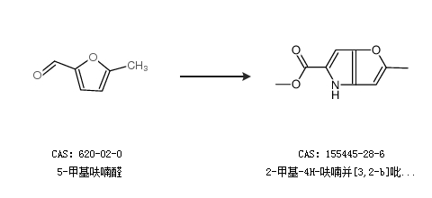 1.通過5-甲基呋喃醛合成2-甲基-4H-呋喃并[3,2-b]吡咯-5-羧酸甲酯