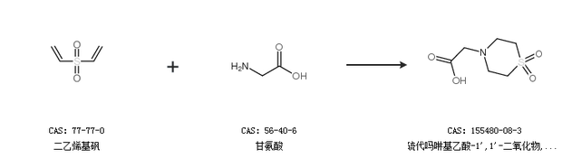 1.通過(guò)二乙烯基砜和甘氨酸合成硫代嗎啉基乙酸-1'',1''-二氧化物,一水合物