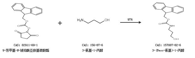 2.通過9-芴甲基-N-琥珀酰亞胺基碳酸酯和3-氨基-1-丙醇合成3-(Fmoc-氨基)-1-丙醇,收率約97%;