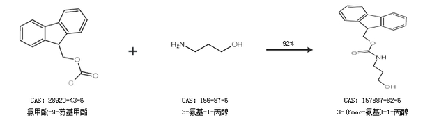 1.通過氯甲酸-9-芴基甲酯和3-氨基-1-丙醇合成3-(Fmoc-氨基)-1-丙醇,收率約92%;