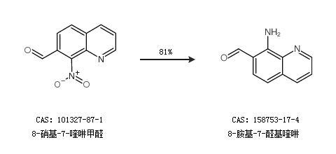 1.通過8-硝基-7-喹啉甲醛合成8-胺基-7-醛基喹啉,收率約81%;