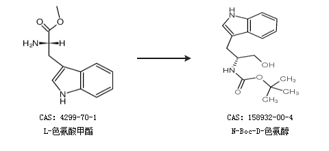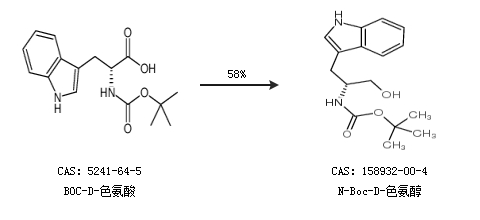1.通過(guò)BOC-D-色氨酸合成N-Boc-D-色氨醇,收率約58%;