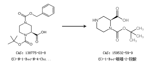 1.通過(S)-N-1-Boc-N-4-Cbz-2-哌嗪甲酸合成(S)-1-Boc-哌嗪-2-羧酸