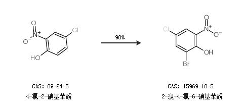 1.通過(guò)4-氯-2-硝基苯酚合成2-溴-4-氯-6-硝基苯酚,收率約90%;