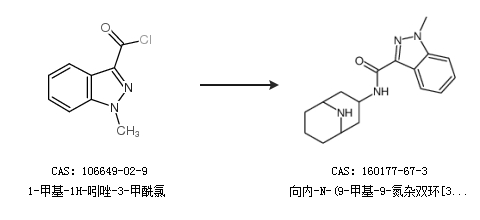 1.通過1-甲基-1H-吲唑-3-甲酰氯合成向內(nèi)-N-(9-甲基-9-氮雜雙環(huán)[3.3.1]壬烷-3基)-1-甲基-1H-吲唑-3-甲酰胺