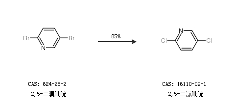 1.通過2,5-二溴吡啶合成2,5-二氯吡啶,收率約85%;