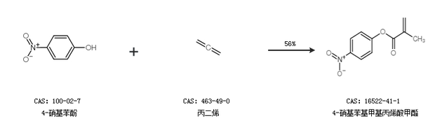1.通過4-硝基苯酚和丙二烯合成4-硝基苯基甲基丙烯酸甲酯,收率約56%;