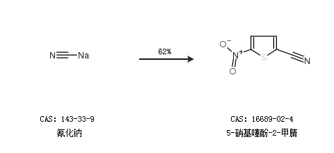 2.通過氰化鈉合成5-硝基噻酚-2-甲腈,收率約62%;