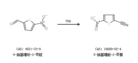 1.通過5-硝基噻吩-2-甲醛合成5-硝基噻酚-2-甲腈,收率約75%;