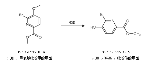 1.通過6-溴-5-甲氧基吡啶甲酸甲酯合成6-溴-5-羥基-2-吡啶羧酸甲酯,收率約93%;