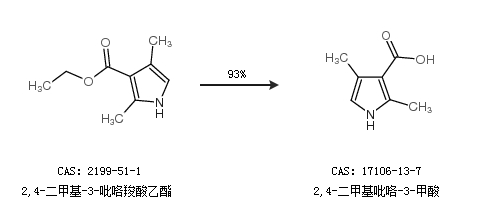 1.通過2,4-二甲基-3-吡咯羧酸乙酯合成2,4-二甲基吡咯-3-甲酸,收率約93%;
