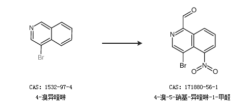 1.通過(guò)4-溴異喹啉合成4-溴-5-硝基-異喹啉-1-甲醛