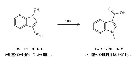 1.通過1-甲基-1H-吡咯并[2,3-b]吡啶-3-甲醛合成1-甲基-1H-吡咯并[2,3-B]吡啶-3-羧酸,收率約58%;