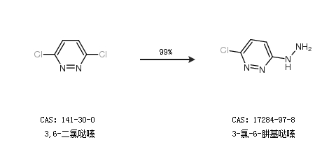 1.通過3,6-二氯噠嗪合成3-氯-6-肼基噠嗪,收率約99%;