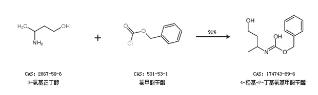1.通過3-氨基正丁醇和氯甲酸芐酯合成4-羥基-2-丁基氨基甲酸芐酯,收率約91%;
