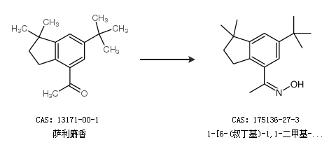 1.通過薩利麝香合成1-[6-(叔丁基)-1,1-二甲基-2,3-二氫-1H-茚-4-基]-1-乙酮肟