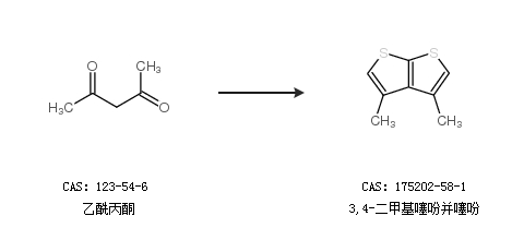 2.通過(guò)乙酰丙酮合成3,4-二甲基噻吩并噻吩
