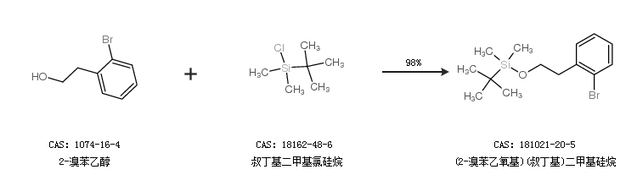 1.通過2-溴苯乙醇和叔丁基二甲基氯硅烷合成(2-溴苯乙氧基)(叔丁基)二甲基硅烷,收率約98%;