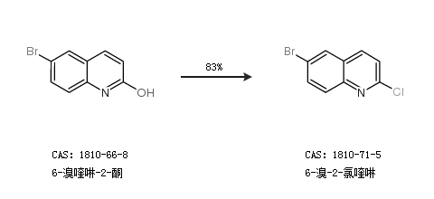 1.通過6-溴喹啉-2-酮合成6-溴-2-氯喹啉,收率約83%;