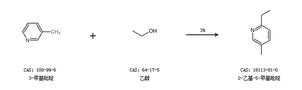 2.通過3-甲基吡啶和乙醇合成2-乙基-5-甲基吡啶,收率約3%;