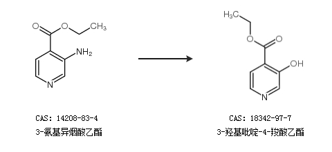 2.通過(guò)3-氨基異煙酸乙酯合成3-羥基吡啶-4-羧酸乙酯