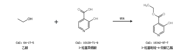 1.通過(guò)乙醇和3-羥基異煙酸合成3-羥基吡啶-4-羧酸乙酯,收率約95%;